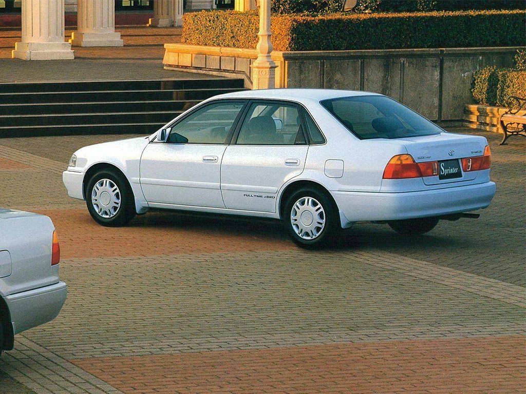 Toyota Sprinter имеет классический дизайн седана с четырьмя дверями, что обеспечивает удобство посадки и высадки пассажиров. Длина автомобиля составляет 4310 мм, ширина — 1690 мм, а высота — 1385 мм. Благодаря колесной базе в 2465 мм, внутри салона достаточно места для комфортного размещения четырех взрослых человек. Клиренс в 150 мм позволяет уверенно чувствовать себя на дорогах с неровным покрытием.